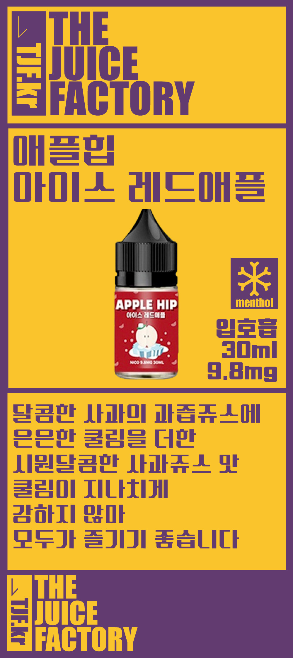 입호흡 애플힙 아이스 레드애플 액상 합성 30ml 0.1mg / 9.8mg