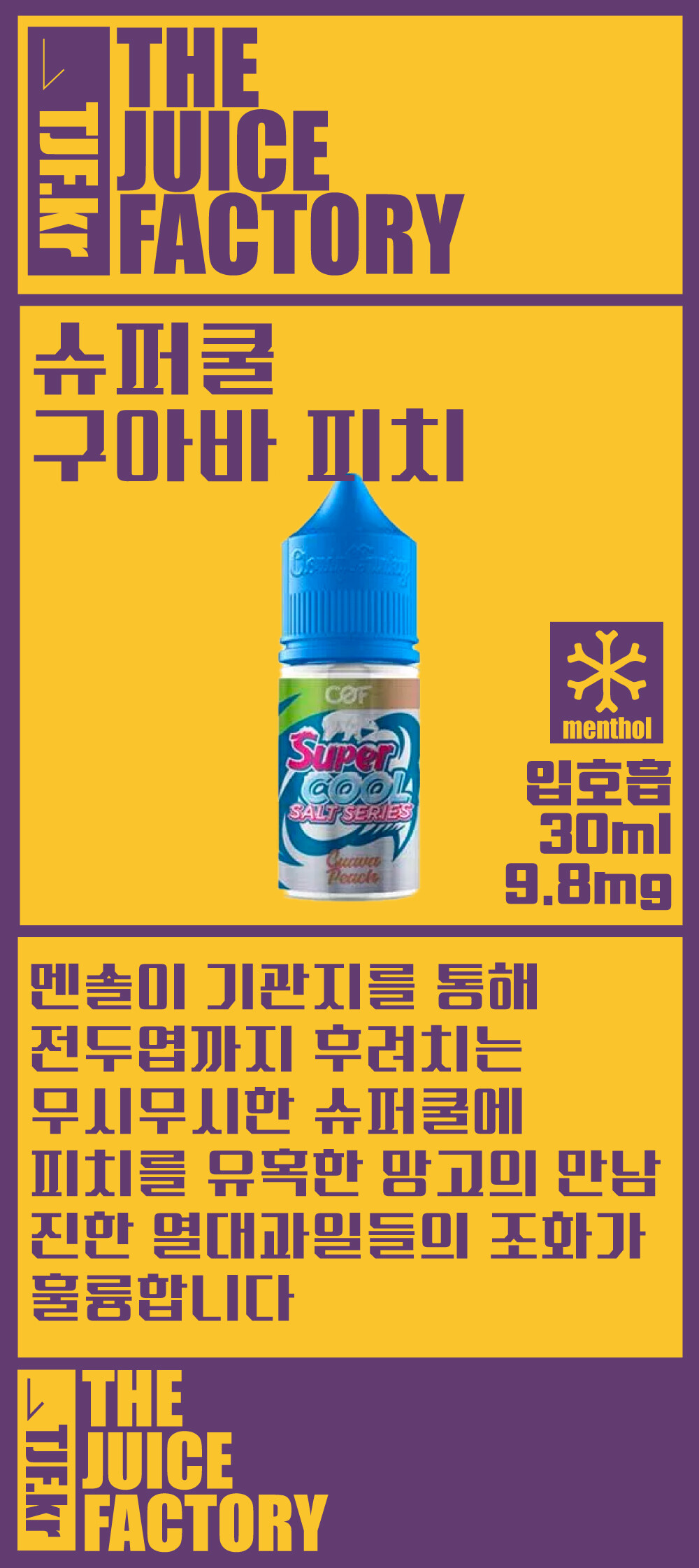 입호흡 슈퍼쿨 구아바 피치 액상 합성 30ml 9.8mg